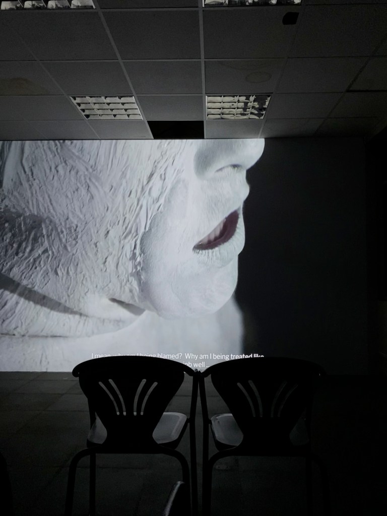 Anonyyminä pysyttelevät kertojat on vuorattu valkoiseen lateksimaiseen massaan, joka peittää heidät lähes kokonaan. Maskeerauksessa on jätetty esiin vain suu, jolla tarinaa kerrotaan, sekä nenä, jonka kautta henkilö hengittää. Kertojat tuovat esiin omakohtaisia kokemuksiaan kapitalistisen koneiston osina: elämästä tukehduttavassa muotissa, joka riisuu minuuden ja tunteet sekä pakottaa toimimaan niin kuin on määrätty. Yksi on palanut loppuun liiallisen työmäärän alla, toinen on lopettanut työnsä koettuaan seksuaalista häirintää ja kolmas menettänyt terveytensä uupumukselle. Kuva vaihtelee polveilevan tehdaskuvaston ja kertojien välillä. Ahdistavalta vaikuttava maskeeraus tuo kuvaukseen inhimillisyyttä: se yhdistää kertojat toisiinsa; osaksi koneistoa, jonka aiheuttamia traumoja he jakavat. Tyhjä ja automatisoitu tehdas taas rakentaa siltaa käynnissä olevaan teolliseen vallankumoukseen.