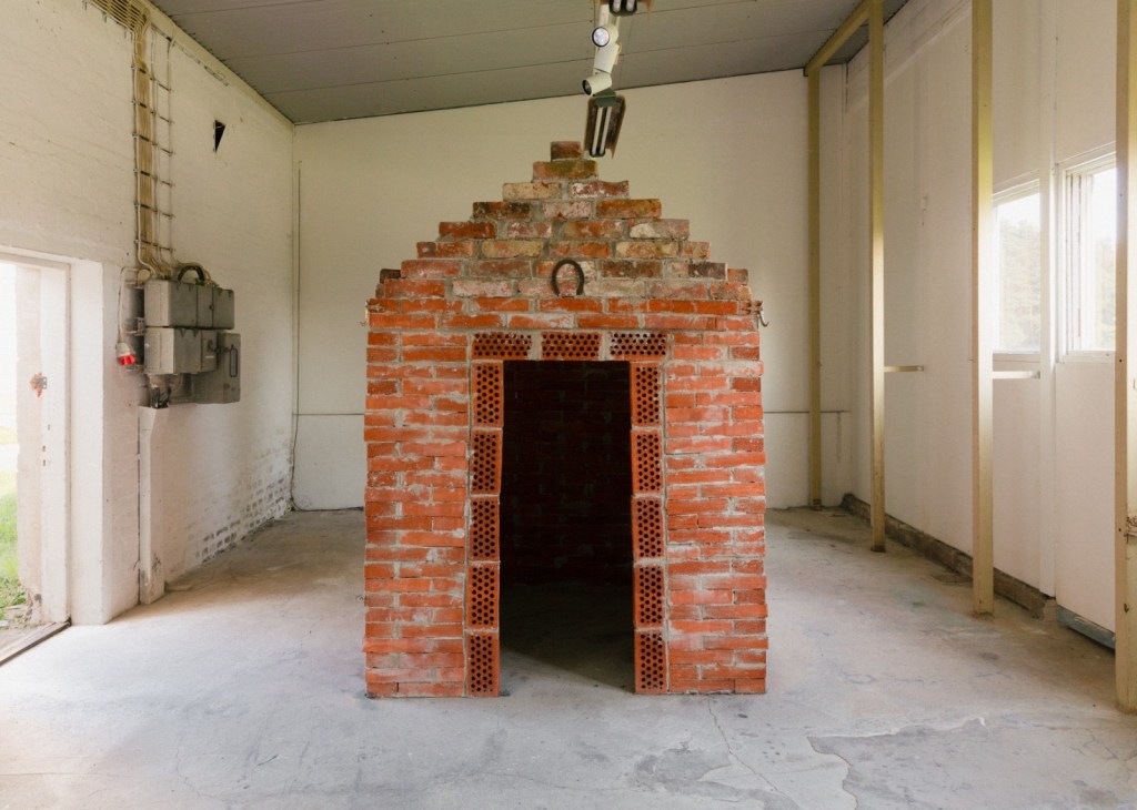 Possuista ahkerin rakentaa tiilimajan, jonka tarjoaman turvan vuoksi susi jää vaille ateriaa ja porsaat iloitsevat. Pysyvyytensä ansiosta tiilimaja on possujen koti siitä lähtien. Myös näyttelyn tiilimaja näyttää ikuiselta, sen alusta on tiukasti kiinni lattiassa ihan kuin se olisi ollut täällä aina. Jälleen kerran, tällä kertaa ruhtinaallisen tilavaa oviaukkoa koristaa onnenkalu, hevosenkenkä.